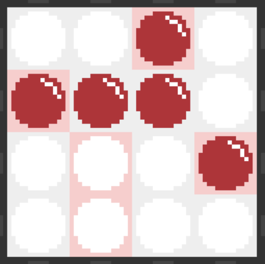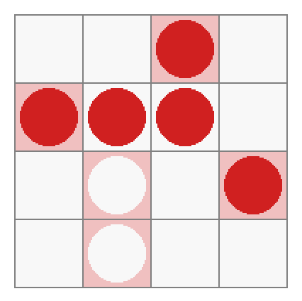 The goal is to find the correct sequence of puffs to push all the puffballs onto the pale-pink target squares. Click on any red puffball to trigger a single puff. All other puffballs directly in line, horizontally or vertically, with the active puffball will get pushed away by one square (unless otherwise blocked). Note, you can't push a puffball off the grid, so once it reaches an edge it is stuck there, you might be able to push it along the edge, but never pull it back from the edge. So if you end up with more puffballs than target-squares on any one edge, well... you might want to start again.
