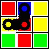 As in the original wriggle puzzles there are no fixed obstacles in these puzzles, except for the wriggler itself. The added twist here however, is that the wriggler can never occupy two cells of the same colour (so all occupied cells must be different colours at all times). Note, there is always one extra colour on the grid compared with the length of the wriggler, this balance was found to yield the perfect degree of connectivity for a good maze.